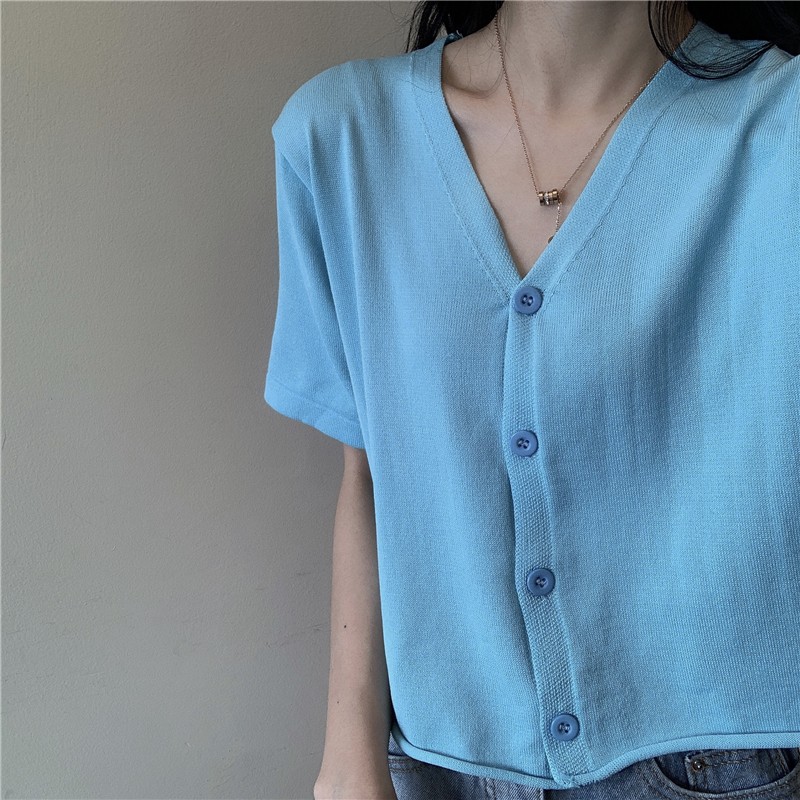 半小時前氣質v領薄款打底針織衫,2020夏季新款女裝短款開衫上衣 - 【買一送二】任選3件,僅需NT$1098